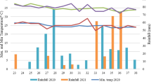 The densities of Myzus persicae and Brevicoryne brassicae in 2020 were higher than 2021. This increase could be attributed to higher mean temperatures in 2020 (from April to August; Table 1) compared to 2021. El Fakhouri et al.32, also observed that increasing the temperature promoted pea aphid (Acyrthosiphon pisum Harris) population in lentil (Lens culinaris Medikus). Also, the precipitation in 2020 growing season (from May to September) was higher than 2021, that could be another reason for increasing the densities of Myzus persicae and Brevicoryne brassicae. Frank and Liburd33 also reported that the differences in temperature and rainfall could affect the population densities of aphids. The highest densities of all insect pests were observed in weed-free treatment and reduced significantly in weed-infested and all weed management treatments. These results indicate that the presence of weeds or living mulches in sesame field would reduce the densities of these insect pests. The densities of Myzus persicae and Brevicoryne brassicae in WSM treatment were higher than those in VLM and FLM treatments, that are in consistent with findings of Frank and Liburd33. They found that in Zucchini, (Cucurbita pepo L.), the aphid density in synthetic white mulch treatment increased compared with living mulches of white clover (Trifolium repens L.) and buckwheat (Fagopyrum esculentum Moench). Conversely, in bush bean (Phaseolus vulgaris), Gill et al.11 observed that aphid densities in living and straw mulches and unmulched control, were not significantly different. The lowest densities of Myzus persicae and Brevicoryne brassicae were observed in CLM treatment that is in agreement with Zhao et al.34 which reported that the presence of Calendula officinalis enhanced Myzus persicae suppression. Also, in intercropping of cowpea (Vigna unguiculata L. Walp.) and African marigold (Tagetes erecta L.) with Cucurbita pepo, observed that marigold and marigold-cowpea intercropping suppressed the aphids by increase in population of natural enemies35.