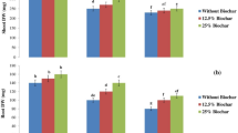 This study aimed to assess the impact of deashed biochar under both saline and non-saline conditions on the generation of free radicals in plants. In salinity stress, free radicals, highly reactive molecules, can inflict harm on cellular components such as proteins, DNA, and cells, thereby contributing to overall plant damage39,40. Antioxidants play a crucial role in mitigating this damage by neutralizing free radicals. They achieve this by donating electrons to stabilize and neutralize these reactive molecules39. Under saline stress conditions, there was increase in electrolyte leakage and a decrease in carotenoids compared to conditions without salinity stress (Fig. 6). These observations indicate that the plants experienced salinity stress. The high production of antioxidants, such as peroxidase, superoxidase, catalase, and ascorbic acid, in response to salinity stress (Fig. 5) underscores the generation of reactive oxygen species. However, application of deashed biochar resulted in a reduction in antioxidant production. This decline was more pronounced with higher deashed biochar application rates (Fig. 5). The correlation between reduced antioxidant production and decreased electrolyte leakage with deashed biochar application (Fig. 6) suggests a protective effect against salinity-induced stress.