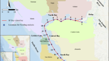 Changes in riverine and tidal forcing may also drive future shifts in flood risk. Instrumental measurements suggest that river discharge to San Francisco Bay has decreased by 30% since the 1800s, primarily during the spring season44,45. Nonetheless, model projections suggest that increased precipitation rates and a lower snow fraction may more than double runoff from extreme events reminiscent of the great 1862 flood in the next century, compounding the effects of SLR and subsidence46. Similarly, from the ocean, the greater diurnal tidal range at San Francisco increased by ~ 3.6% during the twentieth century47 to its current value of 1.78 m (see also ref.12). Any positive trends and variations in mean and extreme water levels increase seepage rates through levees35,48 and, in turn, increase the probability of levee overtopping or failure43,49.