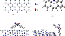 Interactions of various nanotube with biomolecules have also been reported by Mohammadi and his group51,52,53,54,55,56,57,58,59,60. Mohammadi and coworkers explored the binding of fluorouracil with boron nitride (BN), Al-doped boron nitride (Al-BN), and BC2N nanotubes where they reported that fluorouracil adsorbs more effectively with Al-doped boron nitride nanotube than boron nitride (BN) and BC2N nanotubes51. The same group also investigated the effect of Al and Ga atoms doping on the adsorption process of H2SiCl2 over the surface of boron nitride nanotube. They predicted that Ga doped BN nanotube shows higher affinity towards H2SiCl252. He, Ne, Ar, and Kr rare gases interaction with the pristine, Al and Ga atoms doped BN nanotubes using various functionals and basis set in order to devolve a suitable sensor for these gases53. In this study, the authors reported that Al and Ga atoms doped BN nanotubes are better than pristine BN nanotube for the sensing application. The sensing of Nobel gases by pristine and decorated AlN and SiC nanotubes were investigated using DFT calculations and it was found that Ga and Ge-doped nanotubes are potential candidates for sensing of the Nobel gases54. Mohammadi and coworkers performed a theoretical investigation on the interaction of cysteine on pristine BN, Al-doped BN and carbon BN nanotubes to understand various interactions involved between cysteine and above cited nanotubes55. The adsorption of Serine amino acid over pristine fullerene (C60), Si and Ge doped C60 fullerenes were analyzed at B3LYP-D3, ωB97XD, and M062X functionals56. Furthermore, Chlorofluoromethane adsorption process over pristine and Ge doped SiC nanotubes was investigated in order to explore the potential of these nanotubes in development of biosensor57. Besides, the interactions of other bimolecular species with nanomaterials were studies and discussed in detail by Mohammadi and coworkers58,59,60. Ganji and coworkers61 recently reported the interaction between tyrosine and g-Mg3N2 monolayer using DFT simulations where they found that Mg sites are favorable for the significant interaction between tyrosine and g-Mg3N2 monolayer. The authors also ensured the stability of tyrosine@g-Mg3N2 nano-hybrid by molecular dynamics (MD) simulations. Interaction of glycine and metal organic frameworks (MOFs) was analyzed by DFT and the corresponding adsorption energy was predicted − 45.251 kcal/mol62. The binding mechanism of Au32 and C60 cages with 5-Fluorouracil drug was understood by ab initio computations and effect of aqueous medium was also investigated63. Moreover, a theoretical investigation dealing with the functionalization of graphene and ZnO monolayers with mercaptopurine at aqueous media was reported by Aghahosseini and coworkers64. Comprehensive studies using dispersion-corrected density functional theory (DFT) simulations were conducted to investigate the noncovalent functionalization of chitosan with the drug teriflunomide by Tanreh and coworkers65. Recently, we have also reported histamine sensing by B and Si doped fullerenes66.