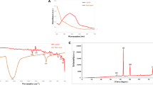 The hydrogen peroxide scavenging assay was performed by modifying the methods of Vilas et al.29, with ascorbic acid as control, various concentration of the bimetallic NPs (15, 30, 60, 120, 240 μg mL−1) was aliquoted and added with 100 μL of 3 mM hydrogen peroxide solution. The solution was incubated at room temperature for 30 min and the absorbance was measured at 610 nm. The percentage of scavenging was calculated using Eq. (1).