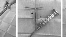 One week after surgery, pelvic anteroposterior radiographs were performed on patients in the supine position and were used to assess cup abduction. Cup abduction was measured as the angle between a line drawn through both acetabular teardrops and the line through the face of the acetabular component. All patients included in the present study underwent a pelvic computed tomography (CT) scan in the supine position one week after surgery. On axial CT images obtained through the central position of the cup, cup anteversion was measured perpendicular to a line drawn across the ischial spines. Digital measurements of postoperative cup angles (ViewR; YOKOGAWA, Japan) were performed by one observer, as previously reported21,22,23. Data obtained for cup anteversion were converted to radiographic definitions and then analyzed28. Main outcome measures were as follows: the absolute difference between cup angles displayed on INS during surgery and those measured after surgery, defined as the measurement error, postoperatively measured cup abduction and anteversion angles, the time required for pin insertion and registration, and the operation time (including the time required for pin insertion and registration). The cup abduction and anteversion angles were also measured by a goniometer during surgery after measurements with INS, the method is same as previous study19, and accuracy measured by the goniometer was compared with the measurement error.