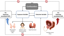 This study demonstrated no causal association between five other AIDs (SLE, RA, MS, JIA, and CD) and CRC, which was consistent with previous partial observational studies57,58,59. However, there were also partial studies inconsistent with our results. A Meta-analysis reported that patients with RA had a decreased risk of CRC60. A cohort study showed the risk of CRC was higher in MS patients than in healthy people61. Above all, the previously observed association between RA and MS and CRC could be mediated by hitherto unknown confounding factors. Therefore, further research is required to clarify the association between these AIDs and CRC using robust designs to eliminate confounding and survival bias. It is necessary to conduct cohort studies with large sample size adjusting for potential confounders. Current observational studies inevitably have confounding factors or reverse causation bias. Thus, animal experiments are equally necessary to eliminate these influences and clarify the underlying mechanisms between AIDs and CRC. In addition, we first reported that genetically predicted CRC had no effect on T1D, psoriasis, and PSC, which demonstrated the associations of these diseases were unidirectional.