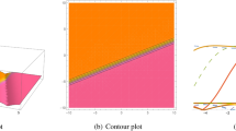 are the (linear) dispersion coefficients, the group velocities, and the frequency dispersion relations, respectively. Note that \(P_j = \frac{1}{2}\frac{\partial ^2 \omega _j}{\partial k_j^2}\), in a way formally analogous to the group-velocity-dispersion (GVD) terms known in nonlinear optics. \(Q_{11}\) and \(Q_{22}\) are self-modulation coefficients and \(Q_{12}\) and \(Q_{21}\) are cross-coupling coefficients. For the exact expressions providing the (four) coefficients \(Q_{ij}\) (for \(i, j =\) 1 or 2) as functions of \(k_1\), \(k_2\) and \(\kappa\) (via the constants \(c_1\), \(c_2\), and \(c_3\)), see the Supplementary Information part accompanying this article. We emphasize that, unless \(k_1 = k_2\) (a stringent condition that won’t be satisfied, in general), the above pairs of coefficients take different values, viz. \(P_1 \ne P_2\), \(Q_{11} \ne Q_{22}\) and \(Q_{12} \ne Q_{21}\).