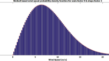 In this part, the probabilistic power of wind plants, the term “\({f}_{wind\, j}({P}_{wind\, j})\)” in (3) and (4), will be determined. The Weibull probability density function (PDF) works well with the wind speed distribution32,53. Following the Weibull PDF, the following formula is utilized for calculating the probability of wind speed \(({Wind}_{v})\):