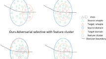 Data-based domain adaptation methods can be divided into two categories. The first type of method simulates source domain data or reconstructs an intermediate domain to compensate for missing source domain data when source domain data is unavailable. For example, Liu et al.29 proposed a batch normalization statistical loss method based on knowledge distillation without source data30, which models the source domain distribution using the mean and variance stored in the BN layer of the source domain model. However, this method is only applicable to source and target domains with similar distributions. Tian et al.31 constructed a Gaussian mixture model that implicitly includes prototype information for each class in the weight of the source classifier and derived the mean and standard deviation of the model based on the source classifier. However, the Gaussian mixture model requires prior knowledge of the prototype information for each class and is difficult to apply to multi-label classification problems. Yeh et al.32 modeled the inference process and the generation process separately and derived a mixture of Gaussian distributions as a reference distribution from the predicted class. However, using a generative model in a virtual domain is not only expensive but also difficult to achieve domain generalization in the presence of complex data patterns. Therefore, some methods attempt to use non-generative methods, such as directly selecting reliable data from the target domain to construct a virtual source domain. This approach involves feeding target domain images into the source model and representing the source domain distribution with samples with high prediction entropy. However, this method may lead to model overfitting and cannot fully utilize the information from the source domain. The second type of method explores the potential data structure or clustering information in unlabeled target domain data to perform domain adaptation tasks. Yang et al.33 proposed using local structural clustering for consistency constraints, which moves feature points from the same cluster to the same category, thereby forming clear clusters in the feature space. Tian et al.34 combined pseudo-labeling techniques to obtain structure-preserving pseudo-labels by taking the weighted average prediction of neighboring nodes. However, previous methods only consider maintaining consistency within the same cluster, i.e., reducing intra-class distance, but ignore the differences between different clusters, failing to increase inter-class distance.