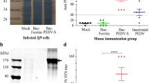 Technologies for subunit vaccine production are widely used in human and veterinary medicine. Eukaryotic expression systems, including baculovirus/insect cell system and mammalian cell expression system, possess several advantages, such as the ability to produce proteins with post-translational modifications, high stability and safety profiles, and high protein yields12. Such technologies have also been applied to the development of CSFV and PCV2 vaccines. The E2 gene of CSFV (CSFV E2), which is the major structural and immunogenic glycoprotein, induces protective humoral and cellular immunities in pigs against CSFV infection13,14,15. Several commercial vaccines based on CSFV E2 glycoproteins are available and have been applied to field use15,16. Furthermore, commercial PCV2 subunit vaccines based on the capsid protein encoded by open reading frame 2 (ORF2) have been proven to induce protective immunity in field studies17,18. PCV2 vaccines based on genotype 2a also revealed cross-protection against PCV2b and PCV2d challenges19,20.Vaccination against CSFV is mandatory up to the end of 2022 as part of the CSFV eradication program in Taiwan. The number of annually imported and inspected PCV2 monovalent and PCV2/Mycoplasma hyopneumoniae combined vaccines was 8.6 million doses in 2021. A total of 8.1 million pigs were slaughtered in the same year. These facts indicate that almost all pigs produced in Taiwan were vaccinated with CSFV and PCV2 vaccines. Furthermore, the reemergence of CSF in Japan mentioned above has gained increased attention, and regular vaccination with a live attenuated GPE- vaccine was started in October 201921. Co-infection of PCV2 and CFSV has also been reported. The prevalence of co-infection varied among areas/countries, with a marked difference between 13.06% in Shandong province in China and 73.91% in Cuba22,23. Both PCV2 and CSFV vaccines are usually administered to piglets around weaning age and to sows that later provide protections to piglets through maternal-derived antibodies (MDA) in colostrum24. Hence, a CSFV/PCV2 bivalent vaccine could be very useful and beneficial to the swine industry worldwide for the control of CSFV and PCV2 infections. In light of this, we developed a novel bivalent subunit vaccine based on full-length E2 and ORF2 proteins, which are the antigenic targets of CSFV and PCV2, respectively. The objective of this study was to evaluate the safety and efficacy of the CSFV/PCV2 bivalent vaccine in mice and specific pathogen-free (SPF) pigs.