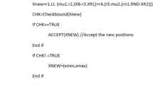 In Eq. (18) \({\overrightarrow{r}}_{11}\) represents a random vector between 0 and 1, while \({r}_{10}\) (Eq. 17) and \({r}_{13}\) denote random numbers generated within the range of 0 and 1. Additionally, \({r}_{12}\) is a normally distributed random number.