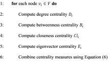 where \(ks_{i}\) is the \(k - shell\) value of node \(i\), \(k_{i}\) is the degree value of node \(i\), \(k_{N(i)\max }\) is the maximum degree value of node \(i\)’s neighbor nodes, \(l_{i}\) is the peel-off order of node \(i\) under the iterative peel-off operation in the same \(ks_{i}\) layer, \(l_{\max }\) is the maximum peel-off sequence number under the same \(ks_{i}\) layer; \(ks_{i|next}\) is the maximum \(k - shell\) value among the neighbors of node \(i\). In particular, to avoid the maximum \(ks_{i}\) layer not participating in the calculation, when a node is in the maximum \(k - shell\) layer, the \(ks_{i|next} - ks_{i}\) value is automatically set to 1.