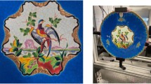 In our case, the analyzed painting, shown in Fig. 1b, is a reproduction of the Russian Orthodox icon Our Lady of Kazan, by an unknown artist, belonging to a private collection. Painted on a 21.5 \(\times\) 27 cm wooden tablet, the icon portrays a bust of the Virgin Mary wearing a golden robe with blue details, with two stars painted on her forehead and the right shoulder. The Virgin Mary is shown carrying infant Jesus, who is wearing blue and red clothing, with only his right arm visible. The icon includes other details, such as the four inscriptions located in the upper corners, to the right of the virgin and above the head of the child, as well as the red halos on the heads of the characters. Traditional gilding was applied, as well as gold details on the clothing. Techniques such as glazes and impasto are also found on the work. Unfortunately, information about the period of manufacture or any previous restoration work is not available; however, there are clear signs of, at least, one previous intervention work such as retouching on the left side of the Virgin’s head. In terms of physical deterioration, the icon is clearly bent as can be seen in Fig. 1a and c, which correspond to the top and bottom of the painting respectively. Additionally, there is a crack in the lower part of the painting, as well as small detachments of the different layers that compose the work.