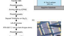 Across the seven wafers, 3912 PiN diodes were fabricated using the following process (see Fig. 1 for diagram): The p-layer was isolated by N implantation. A guard ring structure was fabricated using the design optimized in our previous research11,25,26. An outer trench isolation layer was produced using Cl2 etching. Pd (20 nm)/Pt (10 nm)/Au (80 nm) metal contact pads were used as a topside contact. Ti (20 nm)/Al (120 nm)/Ni (40 nm)/Au (80 nm) was used as a backside contact.