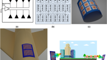 In summary, the proposed 5G/mmWave-enabled system displays a wireless interrogation framework for the next-generation cyber physical system of large composite material SHM for self-monitoring megastructures and Digital Twin applications. The ‘smart’ skin reflectarray-based mmID proof-of-concept prototypes that were attached on/embedded in commonly used materials for wind turbine baldes displayed a highly detectable peak RCS of − 33.75 dBsm and − 35 dBsm for the mounted and embedded sensor respectively. Each sensor displayed a measured 10 dB beamwidth of ± 40\(^{\circ }\) supporting highly oblique interrogation angles, overcoming the issue of the structural interference observed when interrogating at boresight. The ‘smart’ skin reflectarray-based mmID sensor requires no external power and each sensor was interrogated off-axis with a proof-of-concept reader under cyclic mechanical loading in order to evaluate the performance of the sensor. Both sensors displayed a repeatable, recoverable response with a sensitivity of 7.55 kHz/\(\upmu \)-strain and 7.92 kHz/\(\upmu \)-strain for mounted and embedded strain sensors respectively. The experimental results display on-par sensitivity to practical passive reflective-based strain sensor while being 1 m away from the proof-of-concept reader. Through further development of the reader, and by taking advantage of the 75 dBm EIRP in the mmWave spectrum, reading ranges in excess of 35 m are envisioned taking advantage of 5G/mmWave infrastructure. Thus the proposed system enables energy-autonomous, ubiquitous self-monitoring megastructures enabling optimal life-cycle management of wind turbine blades, smart buildings, and ‘smart’ bridge.