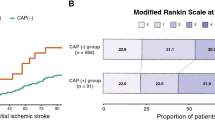 Our findings and those of previous studies suggest several hypotheses for the poor prognosis of patients with CAP ESUS. First, the prevalence of CAP ESUS increases with age12, and patients with CAP have many risk factors15, which might influence the long-term outcomes. Second, CAP has been found to be associated with intracranial atherosclerosis and small vessel disease15,16, suggesting that it is a marker of systemic atherosclerosis15. Polyvascular disease is associated with poor prognosis in patients with ischemic stroke. Third, CAP may be accompanied by atrial fibrillation17,18, and the burden of additional embolic sources may result in a poor prognosis17. Therefore, evaluation by TEE to detect CAP in ESUS patients might be helpful in tailoring treatment of ESUS.