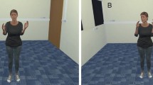From 2160 trials total in the ObR condition (45 participants with 48 trials each), 92 trials were excluded due to missing responses or response times exceeding 30 s, another 432 trials were excluded because of more than 20% of missing gaze data. After trial exclusion, 1636 valid trials remained for statistical analysis. Response, eye-tracking data and questionnaire data were pre-processed and statistically analyzed using the software R (version 3.6.269). Analysis followed the procedure described previously in Jording et al.61. Response time data were logarithmized to reduce skewness and more closely resemble a normal distribution. Eye-tracking and response data were modelled as (generalized) linear mixed effects models (“lme4” package70) with random intercepts for participants. The effects of individual factors were analyzed in likelihood ratio tests of differently saturated models, by testing whether adding a factor to a model significantly increased the models’ fit to the data. Factors were added to the model and tested in the order of mentioning. Where the analysis revealed significant interaction effects, individual factor level combinations were compared in Tukey post-hoc tests correcting for multiple comparisons (‘multcomp’ package71).