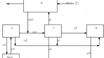 People are thought to become aware of the disease through education and publicity, and they are connected to the rate of “recovered class” individuals who have not lost their immunity or awareness during the cholera outbreak. Those who are infected but fail to take care of themselves eventually perish from the disease at a rate of “\(\vartheta \)” and after receiving effective medical treatment, they recover from the disease at an average of “\(\phi \)”.