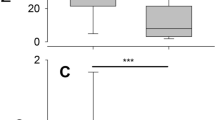 Basal respiration (state 4) was also significantly higher for Gambel’s versus Nuttall’s individuals for PMG (F = 4.73, β = − 4.06, d.f. = 1, 104, p = 0.03, Fig. 4A) and SUCC (F = 10.5, β = − 17.84, d.f. = 1, 103, p = 0.002, Fig. 4C) but not PC (F = 2.82, β = − 4.80, d.f. = 1, 104, p = 0.10, Fig. 4B). Based on pairwise comparisons, basal respiration (state 4) was significantly higher for Gambel’s individuals in the fall versus winter timepoint for complex I using PMG (Tukey, Z = 4.04, β = 11.0, d.f. = 101, p = 0.001, Fig. 4A) as well as the fall Nuttall’s timepoint (Tukey, Z = 3.38, β = 9.1, p = 0.009) and winter Nuttall’s timepoint (Tukey, Z = 2.94, β = 8.10, p = 0.03). However, Gambel’s fall versus spring timepoints were not statistically different (Tukey, Z = − 0.75, β = − 2.08, p = 0.95). For complex I using PC, state 4 for the Gambel’s fall timepoint was significantly higher than the winter Gambel’s timepoint (Tukey, Z = 5.16, β = 20.8, d.f. = 101, p < 0.001, Fig. 4B), the fall Nuttall’s timepoint (Tukey, Z = 3.52, β = 14.04, p = 0.006), and winter Nuttall’s timepoint (Tukey, Z = 4.16, β = 17.00, p < 0.001). Gambel’s fall was not different then the Gambel’s spring timepoint (Tukey, Z = − 2.45, β = − 10.12, p = 0.11, Fig. 4B). For complex II using SUCC, the Gambel’s fall timepoint was significantly higher than the fall Nuttall’s timepoint (Tukey, Z = 2.89, β = 24.2, d.f. = 100, p = 0.04, Fig. 4C) and winter Nuttall’s timepoint (Tukey, Z = 3.71, β = 31.69, p = 0.003). However, the Gambel’s fall and spring timepoints were not statistically different (Tukey, Z = − 1.01, β = − 8.77, p = 0.85, Fig. 4C) as well as the winter Gambel’s timepoint (Tukey, Z = 2.39, β = 20.4, p = 0.13). The Nuttall’s timepoints were not significantly different for complex I using PMG (Tukey, Z = − 0.38, β = − 1.01, d.f. = 101, p = 1, Fig. 4A), PC (Tukey, Z = 0.75, β = 2.95, d.f. = 101, p = 0.94, Fig. 4B), and SUCC (Tukey, Z = 0.91, β = 7.54, d.f. = 100, p = 0.89, Fig. 4C).