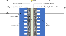 As a promising technology to facilitate the transition from fossil fuels to hydrogen, fuel cells are proposed6. Among the introduced fuel cell variants, the Proton Exchange Membrane Fuel Cell (PEMFC) is considered the most efficient type in low-temperature operations7. To accelerate the commercialization of the PEMFCs, improving the water/thermal management, increasing the durability, and reducing the costs are essential8. In the long-term operation of the PEMFCs, flooding (the excessive accumulation of the water that enlarges the mass transport losses) or drying out of the membrane should be prevented, hence the operation of the cell in the temperature range of 65–85 \(^{\circ }\), and using a gas diffusion layer (GDL) is suggested9.