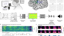 Neural signals were transformed into broadband high-gamma power features that have been previously reported to closely track the timing and location of cortical activation during speech and language processes42,52. In this feature extraction process, we first re-referenced all channels within each 64-contact grid to a common-average reference (CAR filtering), excluding channels with poor signal quality in any training session. Next, we selected all channels that had previously shown significant high-gamma responses during the syllable repetition task described above. This included 64 channels (Supplementary Fig. S2, channels with blue outlines) across motor, premotor and somatosensory cortices, including the dorsal laryngeal area. From here, we applied two IIR Butterworth filters (both with filter order 8) to extract the high-gamma band in the range of 70 to 170 Hz while subsequently attenuating the first harmonic (118–122 Hz) of the line noise. For each channel, we computed logarithmic power features based on windows with a fixed length of 50 ms and a frameshift of 10 ms. To estimate speech-related increases in broadband high-gamma power, we normalized each feature by the day-specific statistics of the high-gamma power features accumulated from the syllable repetition task.