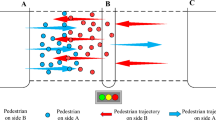 To validate our findings, we conducted simulations involving the aforementioned factors and compared the outcomes with other research. The experimental and simulation results show discrepancies in speed and maximum flow. Furthermore, deadlock occurred in the simulation results when the minimum sizes of \({L}_{f}\) and Ls were 20 cm. Future investigations should focus on refining the model in terms of directional and speed selections to enhance its congruence with real-world scenarios (Supplementary Information S1).