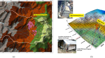 The section K1515 + 860 ~ K1516 + 000 in the downward direction of Liangwan freeway is affected by continuous rainfall, and the excavated slope on the right side is deformed and slipped. According to the field investigation, the slope has a direction of 345° and an angle of nearly 30°, and there is obvious deformation on the surface. The middle and front part of the slope partially collapses and slides, and longitudinal shear fissures can be seen within the deformation range. The extension length of fissures at the trailing edge of deformable bodies is about 60 m, and the extension length of fissures near the freeway side is about 120 m. The landslide height is about 75 m, with a length of about 180 m. The maximum tensile fissures of the slope are about 80 cm, and the visible depth is about 90 cm. In order to ensure the stability of slope engineering and accurately determine the sliding range and sliding surface18,19, the deformation monitoring points and surface cracks monitoring points are arranged on site to monitor and analyze the slope stability (as shown in Fig. 1), and the deformation of monitoring points are shown in Fig. 2.