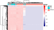 The National Center for Biotechnology Information (NCBI) Gene Expression Omnibus database (https://www.ncbi.nlm.nih.gov/geo/) was used to obtain gene expression profiling data related to type 2 diabetes mellitus and MAFLD via the GEOquery package [version 2.54.1]7. Downloaded from the GEO database (https://www.ncbi.nlm.nih.gov/U) 2 separate GeneChip datasets GSE23343 and GSE49541. The dataset, GSE23343, includes liver tissue samples from 10 patients with type 2 diabetes and 7 subjects with normal glucose tolerance. Within the GSE49541 dataset, there were 72 liver tissue samples in the set, of which 40 were mild MASLD (fibrosis stage 0–1) and 32 were advanced MASLD (fibrosis stage 3–4). Data were standardised by limma [3.52.2]8. Principal component analysis (PCA) was performed on the standardised dataset using R (version 3.6.3). PCA plots were drawn using ggplot2 [3.3.6] to see clustering between sample groups.