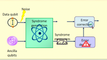 With \(\alpha _{I}|,\alpha _{X},\alpha _{Z},\alpha _{XZ}\) representing the expansion coefficients of the noise process, the no-cloning theorem establishes that a quantum state \(|\psi \rangle\)cannot be redundantly copied\((|\psi \rangle \otimes |\psi \rangle ,\dots ,\otimes \Vert \psi \rangle )\), where \(\otimes\) denotes the n-fold tensor product. Despite this limitation, quantum information redundancy can be achieved through the logical state e, encoding of a given state \(|\psi \rangle _{n}|\)via quantum entanglement and a unitary operator U, such that \(|\psi \rangle _{n} = U(|\psi \rangle \otimes |\psi \rangle ,\dots ,\otimes \Vert \psi \rangle )\). An illustrative example of such a unitary operator is the GHZ state, generated using CNOT gates. In this encoding, the logical state is defined within a subspace of the expanded Hilbert space. This subspace determines both the code space L and its orthogonal error space F, such that any error \(A|\psi _{i} \in F\). The orthogonality of L and F enables the determination of the subspace occupied by the logical qubit through projective measurement, preserving the encoded quantum information. In the realm of quantum coding, the set \(\rho\) comprises non-destructive measurements known as stabilizer measurements. These measurements are performed through additional qubits (ancilla bits). The collective result of all stabilizer measurements on a given state is termed the syndrome. For a given stabilizer generator \(\rho E|\psi \rangle _{i} = |\psi \rangle _{i}\) results in an anti-commuting (-1 Eigen value) and thus detects an error A. In cases where the syndrome measurement is unreliable, it may be necessary to repeat the measure to enhance confidence in the outcome.