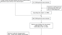 Statistical analysis was performed using R software (version 4.2.1). The continuous variables with normal distribution and homogeneity of variance are expressed as means ± standard deviations and tested using an independent sample t-test. Categorical variables were reported as percentages and compared using the Chi-square test. Independent risk factors were selected using least absolute shrinkage and selection operator (LASSO) regression and multivariate logistic regression16. A nomogram for identifying DR occurrence was constructed using covariates selected by multivariate regression, and discriminatory ability was assessed by measuring the area under the receiver operating characteristic curve (ROC)17. The Hosmer–Lemeshow goodness of fit test was used to assess the model fit and efficacy of the risk model18. Decision curve analysis and clinical impact curves were used to assess the clinical applicability of the nomogram19. All statistical analyses were two-sided, and statistical significance was set at p < 0.05.