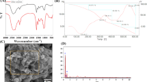 Thermogravimetric analyses (TGA) of SnMoT sorbent (Fig. 1c), revealed a two-stage process when heated at ten °C/min. The 1st stage (32–201 °C) can be related to the desorption of physically adsorbed water from the surface of the sorbent41,58. The weight loss in this region is 4.05%. The 2nd stage (201–700 °C) may be due to the loss of chemically bonded H2O41, the weight loss in this region is 63.39%. Differential thermal (DTA) shows two endothermic peaks at 143 and 265 °C due to free H2O and chemically bonded H2O loss. From the TGA data in Fig. 1c, the weight loss for SnMoT sorbent continued up to 700 °C. The weight loss of SnMoT sorbent with a heating temperature of 10.43% reflects that SnMoT sorbent is more thermally stable than other sorbents28.