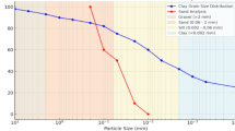 The swelling clay used in this research work was procured from the vicinity of Narowal city, Punjab Province, Pakistan. Undisturbed and representative disturbed samples were collected at a depth of 1–1.5 m and carefully transported to the geotechnical engineering laboratory at University of Engineering & Technology, Lahore. A cohesive non-swelling (CNS) and cohesionless soil (Kassu) samples were collected from the outskirts of Lahore city-Pakistan (Fig. 1). Physical properties of the swelling clay, CNS and Kassu samples are given in Table 1. Grain size distribution curves of the virgin soil, CNS and Kassu soil samples are also given in Fig. 2. The swelling clay sample is classified as fat clay (CH) according to the unified soil classification system (USCS) and A-7-6 as per the American Association of State Highway and Transportation Officials (AASHTO) while the CNS is classified as lean clay (CL) and A-6 as per USCS and AASHTO classification, respectively. Kassu sample is classified as non-plastic silt (ML) and A-4 as per respective classification systems. Based on the test results carried out on the swelling clay sample, it can be concluded that it cannot be used as a suitable subgrade material in road or foundation construction. The swelling clay was blended with CNS and Kassu in varying proportions ranging between 0 and 35% at an interval of 5% to constitute the composite samples. Following tests were performed on the compoite samples following relevant ASTM procedures, like particle size analysis (ASTM D-6913)49, consistency limit tests (ASTM D-4318)50, specific gravity test (ASTM D-854)51.