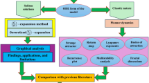 Currently, the nonlinear partial differential equations are widely utilized to determine the exact soliton solution of a variety of natural phenomena1,2,3,4,5. Nonlinear phenomena use in various scientific fields such as, plasma physics, solid state physics, fluid dynamics, chemical kinetics and mathematical biology6,7,8,9,10. The applications of nonlinear models cover physics11,12, network13, computer science14, and many other fields15. Exact solutions can be evaluated without the effect of nonlinear resistances in propagation using Hirota derivatives. In the literature16, there are various viewpoints on the fractional derivative operator. However, numerous scholars and scientists have been investigating the potential of nonlinear operator for the past three decades such as Galerkin finite element technique17, Paul–Painlevé approach18, the Exp-function scheme19, the extended trial equation scheme20, the \(tan(\phi /2)\)-expansion scheme21, etc. Based on the above methods, plenty of the exact solutions including different schemes have been worked, for example, the generalized exponential rational function method22, Gaussian traveling wave solution23, seismic attenuation for geotechnical24, the generalized trial equation scheme25, a wavelet approach26. Since the 1950s, the concept of soliton has been put forward in the study of nonlinear phenomena, which makes the study of nonlinear partial differential equations (NLPDEs) solution become a hot spot in nonlinear science including orthogonal frequency division multiplexing27, Fluid inverse volumetric modeling28, network governance step by step method29 and the neural network method30. However, due to the complexity of NLPDEs, the results of mathematical research have not provided a universally effective method to find the exact solution at present. With the emergence of a variety of solution methods, not only the past difficult to solve the equation has been solved, but also new, has important physical meaning of the solution has been discovered and applied in practice. Nonlinear differential equations have been widely employed to describe a wide range of physical processes, not just in mathematics but also in physics, biology, and engineering, for example: the conservation of mass, electrochemical analysis, groundwater flow problem, viscoelastic damping models, fractional quantum mechanics, classical mechanics, and propagation of acoustical waves31,32,33,34,35. Several effective techniques have been established to find the clear and specific solutions of nonlinear models for instance such as machine learning methods36, He’s variational direct technique37, the discrete mean-field stochastic systems38, bistable origami flexible gripper39, the breather wave solutions40. The nonlinear problems are characterized by dispersive and dissipative effects, advection, convection, and diffusion process such as N-lump solutions41, seismic wave attenuation42, the development of deep geothermal energy43, hyperbolic shear polaritons44, the modified Schrödinger’s equation via innovative approaches45. A wide class of analytical techniques other schemes have been applied to solve nonlinear problems such as the parabolic dish solar collector46, the renewable energy sources47, a hybrid convolutional neural network48, a hybrid robust-stochastic approach49, a optimal chiller loading50. Furthermore, many mathematical models have been constructed based on more theory and applied assumptions. Many researchers have constructed on these problems including the distributed series reactor51, an intelligent algorithm52, the deep learning method53, the trigonometric quadrature rules54, nonlinearities of SiGe bipolar phototransistor55. Several researchers have studied the modified and optimization technique such as the robust optimization technique56, random variables with Copula theory57, and power systems58. Jiand and co-workers studied the asymptotic properties for the drift parameter estimators in the fractional Ornstein-Uhlenbeck process with periodic mean function and long range dependence59. Authors investigated the distinct types of the exact soliton solutions to an important model called the beta-time fractional (1 + 1)-dimensional nonlinear Van der Waals equation60. The versatility of electrofabrication for the customized manufacturing of functional gradient soft matter was studied in61. The multiple soliton solutions for the generalized Bogoyavlensky–Konopelchenko equation along with solutions contain first-order, second-order, and third-order wave solutions were analyzed62.