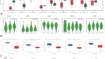 From a study by Jia et al.30, which 28 human immune cell types were preserved, including natural killer T cells, activated CD4 T cells, activated dendritic cells, regulatory T cells, effector memory CD4 T cells, effector memory CD8 T cells, gamma delta T cells, immature B cells, activated CD8 T cells, central memory CD4 T cells, central memory CD8 T cells, etc. (Supplementary Table 4), we were able to get a gene set designating each TME-infiltrating immune cell type. The relative abundance of each TME-infiltrating cell in each sample was represented by the enrichment fraction determined by ssGSEA analysis. Furthermore, prevalent immune checkpoint markers were included in the current work. Next, we estimated the probability of the immunotherapeutic response using the TIDE method (http://tide.dfci.harvard.edu) and the submap algorithm (https://cloud.genepattern.org/gp)29.