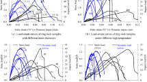 In deep rock engineering, temperature is an important factor that affects the mechanical properties of rocks14,15,16, and many scholars have addressed the factor of temperature. Huang17 conducted comparative tensile and uniaxial compressive strength tests on marble, sandstone, and granite samples under varying water content states (dry vs. saturated) before and after freezing with liquid nitrogen. However, blasting and excavation structures in alpine regions require an understanding of rock dynamics under low-temperature conditions. Wang18 investigated the effect of temperature on saturated granite at high strain rates. He reported that the relationships of peak strain and damage variables with temperature indicate the effect of temperature on the strength of saturated granite after freezing, with low temperatures potentially increasing its strength. Zhang19 designed tests under the composite effect of freeze-thaw cycles and cyclic impact to study the mechanical behavior of red sandstone. Meng20 analyzed the variation rule of the microstructure of red sandstone with the number of freeze-thaw cycles and reported that the internal structure of red sandstone exhibited an osmotic expansion phenomenon and that with an increasing number of cycles, this phenomenon became more obvious. Shu et al.21 conducted cyclic impact experiments on granite following treatments at different high temperatures, simulating high geothermal environment conditions within a deep rock body. Wang et al.22,23 investigated the dynamic properties and energy evolution of granite under cyclic dynamic loading when subjected to different heat treatment conditions using the SHPB test setup. The results revealed a rapid deterioration in the mechanical properties of the rock at 600 °C, whereas at 200 °C, the number of microfractures within the granite samples decreased, indicating a significant temperature effect. It is evident that temperature-related dynamic mechanical tests are performed mainly by pretreating rock samples beforehand, and less research has been done on this aspect of dynamic mechanical tests without considering the real-time temperature environment. The rock samples subjected to temperature-related dynamic mechanical tests, mainly high- and low-temperature treatments or freeze‒thaw treatment, are pretreated without considering the real-time temperature conditions for dynamic mechanical tests; this aspect of the study is limited.
