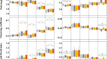 Using the Desikan-Killiany atlas50 the ROIs for each of the networks were selected. The WB analysis took all 68 areas of the atlas into account, while 14 ROIs were selected for the DMN based on Kabbara et al.47. Regions of the medial prefrontal cortex, medial temporal lobe, posterior cingulate cortex, and parietal cortex were defined and used for the DMN analyses. This network was selected a priori because the DMN is known as a task-negative network, characterized by increased activity during resting-state conditions51, and because previous research has shown that this network may be particularly impacted by physical stress after a SRC injury15. For a list of the ROIs included within the Desikan-Killiany atlas please refer to the supplementary material. The PLV-based adjacency matrices were thresholded proportionally from 10 to 50% in increments of 10% to include several gradations of possibly-influential connections, in-line with previously published graph analysis33,34. The matrices were analyzed binarized and weighted, increasing the contrast and containing more information, respectively34. Thus, elucidating specific network properties while testing the stability of the networks52. The graph-theoretical parameters for the analysis, CP and LP, were computed using the MATLAB-based Brain Connectivity Toolbox (BCT)5. The normalized CP (\(\:\gamma\:\)) and LP (\(\:\lambda\:\)), required for the SWI-calculation, were determined with respect to random surrogates derived from the original networks5,22. Small-world topology was evaluated based on the following formula: SWI \(\:\left(\sigma\:\right)=\frac{\gamma\:}{\lambda\:}\)22. Networks with values higher than 1 depict small-world topology22. The key data processing steps are again portrayed in Fig. 2. After conducting the initial graph analysis, 4 datasets pre-exercise and 6 datasets post-exercise for the DMN had to be excluded from further analysis. This was due to zero-values resulting from the calculation of CP and, consequently, for SWI.