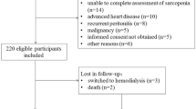 Ren, H., Gong, D., Jia, F., Xu, B. & Liu, Z. Sarcopenia in patients undergoing maintenance hemodialysis: Incidence rate, risk factors and its effect on survival risk. Ren. Fail. 38, 364–371 (2016).