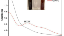 Recent scientific interest in the NPs synthesis approach arises from its ease of usage, cost efficiency, and potential for large-scale manufacture. Biosynthesis was used to synthesize Ag-NPs from Coniothyrium chaingmaiense strain. The synthesis of AgNPs from fungal filtrate of C. chaingmaiense was carried out. After 24 h of incubation, the reaction mixture’s light brown colour was changed to a dark brown colour (Fig. 4, a and b) indicates that the synthesis process converted silver ions to Con-AgNPs. Bio-spectrophotometer was used to determine the absorbance of sample supernatant. Similar to our results21, the fungus may release reductase, which decreases Ag + ions in the solution. Previous research has demonstrated the role of decreasing nicotinamide adenine dinucleotide (NADH) and the NADH-dependent nitrate reductase enzyme in metal nanoparticle formation. Proteins also cover metal nanoparticles, such as AgNPs, to prevent aggregation and keep them stable in the media.