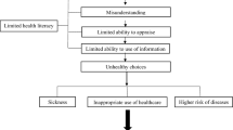 Health literacy is the capacity of individuals to obtain, handle, and comprehend essential health information and services needed to make adequate health decisions: basic functions (i.e., literacy and numeracy), interactivity (i.e., patient willingness to form co-building partnerships with healthcare providers), and key skills (i.e., patient’s ability to differentiate between available health services). These are necessary to function properly in the healthcare delivery system7,8,9. Health literacy predicts individual health better than age, income, education level, and race10. It is a critical factor for achieving health outcomes and quality of life for people with chronic illnesses11.
