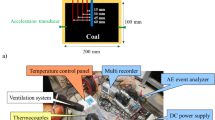 Figure 8 shows the composition and calorific value of the major produced gases analyzed by gas chromatography every hour. Table 5 presents the average composition and calorific value of the major gas components produced during the relatively stable experimental period of 34–40 h. The primary gases produced in the UCG process are nitrogen (N2), carbon dioxide (CO2), hydrogen (H2), carbon monoxide (CO), and methane (CH4). Among these gases, the combustible gas components are H2, CO, and CH4. Although N2 does not participate in the UCG chemical reactions, it is included in the oxidant (oxygen-enriched air) and, therefore, flows out without being involved in the UCG process. In Fig. 8, the calorific value serves as an indicator of the energy content of the combustible gases. It is calculated by multiplying its specific calorific value by the composition of each combustible gas obtained from the experiment. As shown in Table 5, the average values of the major gases recovered from 34 h to 40 h are 21.3% H2, 17.6% CO, 20.1% CO2, and 39.9% N2, with H2 and CO being the primary combustible components. Therefore, it is inferred that the combustible gases were mainly generated through steam gasification and water-gas shift reactions3. As shown in Fig. 8, the concentrations of each produced gas fluctuate markedly during the first 4 h of the experiment, indicating the occurrence of coal combustion and gasification. At approximately 9 h, increasing the oxygen concentration of the oxidant results in an increase in the H2 and CO compositions and the calorific value an hour later. This observation confirms, as noted in a previous study20, that the oxygen concentration significantly affects the gas composition and calorific value. Between 17 and 22 h, the composition of H2 and CO and the calorific value decrease, whereas the composition of CO2 increases, suggesting stagnation of gasification under a constant oxidant injection rate and oxygen concentration20. At approximately 22 h, a movement of the injection pipe and an increase in the oxidant injection rate lead to a significant increase in the composition of the combustible gases H2 and CO and the calorific value, while the concentration of CO2 decreases. In addition, the sharp drop in N2 composition at the 22-hour point indicates a significant increase in the volume of the produced gas. These results are attributed to the injection pipe being moved by 100 mm instead of the previous 50 mm intervals and an increase in the oxidant injection rate at the 22-hour point, which expanded the contact area between the oxidant and coal, resulting in more combustible gas production. Water injection was halted between 52 and 56 h in the experiment. This operation caused the H2 content to drop from 19.6 to 16.9%, while the CO content increased from 15.5 to 19.2%. The decrease in H2 composition and increase in CO composition due to the cessation of water injection can be attributed to the suppression of endothermic reactions, such as steam gasification and the water-gas shift reaction. Though the composition of H2 is relatively high during the 52–56 h period, it is observed that the stop of water injection led to changes in the composition of H2 and CO. The little change of the composition of H2 and CO is considered to be due to the movement of the injection pipe. Around 52 h of the experiment, the injection pipe was moved approximately 100 mm towards the inlet side in the artificial coal sample. The consequent contact of the oxidant with the unreacted coal area may have promoted the production of combustible gas. Alternatively, combustible gases may also have been produced by the intrusion of water outside the reaction zone (water contained in the artificial coal seam sample). After resuming water injection after 56 h, H2 increases to approximately 20%. Therefore, water injection during UCG process suggests the potential to enhance H2 production by promoting steam gasification and the water-gas shift reaction3,4,5,20,21,22. Furthermore, after 56 h, the water injection rate was reduced from 30 mL/min to 20 mLmin, leading to a decreasing trend in the H2 composition. Beyond 72 h, a notable decrease in the H2 composition and an increase in the N2 composition are observed. Considering the sharp decline in temperature near the co-axial well above, except for T18, and the decrease in maximum temperature compared to the initial stage of the experiment, it is suggested that the high-temperature region required for H2 production shrank after 72 h. This implies that the reduction in unreacted coal regions led to gasification reactions occurring within a limited high-temperature area, resulting in a decrease in the combustible gas components. CH4, a gas produced from coal pyrolysis occurring at approximately 600 °C, was detected at approximately 2% during the initial stage when the combustion-gasification region had not sufficiently expanded, but it was detected at less than 1% thereafter. Therefore, it is considered that CH4 does not significantly impact the composition and calorific value of the produced gas in this experiment. From the results of the produced gas, therefore, it is revealed that the conditions of oxygen concentration and water injection during the UCG process significantly influence the composition and calorific value of the produced gas.