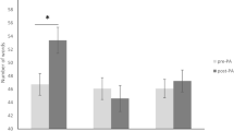 The first analysis explored the effects of PA on the number of correct spatial positions reproduced.