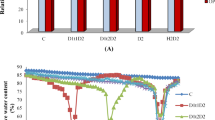 Morphophysiological data from stressed and nonstressed plants were collected on the 1st, 2nd, and 4th days after stress initiation. The data were gathered from four randomly selected plants for each sampling day and genotype. The total leaf area was calculated as a product of the length and width of fully opened leaves and a factor of 0.75 12. After the shoot fresh weight was determined, the samples were oven-dried at 80 °C until a constant weight was reached, after which the dry shoot weight was determined using an electronic scale. The leaf chlorophyll content was measured nondestructively using a SPAD-502 Plus Chlorophyll Meter (Spectrum Technologies, Inc., Aurora, IL, USA). For chlorophyll fluorescence measurements, the 3rd fully expanded leaves were dark-adapted for 30 min before the variable-to-maximum fluorescence ratio (Fv/Fm ratio) and performance index were assessed with a PEA portable fluorometer (Hansatech Instrument Ltd.), which emits 650 nm wavelength light at an intensity of 3500 μmol m−2 s−1 over a 1-s detection time 24. Two young leaves were taken from each sampled plant, and four leaf discs were cut with a number 9 cork borer (1.9 cm diameter) to measure the relative leaf water content. The fresh weight of the discs was recorded, after which the plants were floated in a petri dish filled with water for 24 h at room temperature. The turgid weight of the plants was recorded after blotting the discs dry with a paper towel. The discs were then oven-dried at 80 °C for 24 h to obtain their dry weight. The relative leaf water content was calculated using Eq. 110.