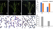 Anthers were collected from spikelet of the upper and middle parts of the main panicle at 1 to 2 days before anthesis, fixed and stored in 70% ethanol for determining pollen fertility65. Pollen fertility was estimated based on the percentage of pollen grains stained with 1% (w/v) iodine-potassium iodide solution. The pollen grain sterility types were classified as typical, spherical and stained abortion types. Observation requires at least three independent microscopic fields, at least 100 pollen grains in each field were scored for counting the percentage of fertile pollen grains in each plant. Spikelet fertility was calculated as a percentage of fertilized spikelet per panicle for each of the individuals involved.
