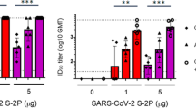 Another finding of our study was that co-delivery of IL-15 and TLR-Ls in DOTAP can be an effective adjuvant combination for enhancing immunity against SARS-CoV-2 in aged (> 18 months old) mice. Notably, vaccine responses vary considerably according to the recipient’s age and sex, with more potent effects in females than males and in younger people than the elderly25,26. Aged mice immunized against the original SARS-CoV seemed to display increased immunopathology rather than protection27. Thus, our vaccine platform’s ability to stimulate a strong immune response in aged mice has clinical implications for vaccinating the elderly population that is most susceptible to the deleterious effects of SARS-CoV-2 infection, and for whom vaccination with the initial round of mRNA vaccines has shown limited ability to decrease infection with Omicron variants28. Besides aging, the other main concern at the current stage of SARS-CoV-2 progression is immune-escape of the dominant strain from immunity induced by the strain first vaccinated against.