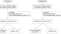 We acknowledge several limitations: First, the retrospective and single-center design of our study might limit the generalizability of our findings to a broader ACLF patient population. Although our study was internally validated with cross-sectional validation as advised for small data sets, larger multicenter studies are warranted to validate and extend the predictive capabilities of our ML-based model to diverse patient populations27. Second, although our study has yielded promising results, the high AUROC of our score may indicate potential overfitting. We have attempted to address this using fivefold cross-validation as well as lasso and ridge regression. Nevertheless, the generalizability of our score needs to be tested in external cohorts in future studies where hyperparameters can be fine-tuned to improve the robustness of our score. Third, as a single-center study, our findings might not fully represent the diversity of patient characteristics and clinical practices seen in multiple centers. Therefore, we recommend that future research should focus on conducting multi-center studies to assess the model’s performance across different healthcare settings and patient demographics.