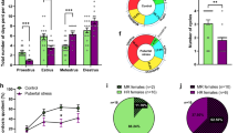 Olfactory preference of female mice was tested in an enclosed plexiglass Y-maze, following a previously established protocol20,30,31. The maze comprised 3 equivalent arms (25.8 cm length, 11 cm width, 30.7 cm height). Female mice underwent a familiarization period over two consecutive days (day 1 and 2), during which two empty perforated goal boxes were positioned at each end of two arms for a duration of 10 min. On the testing day (day 3), females were placed in the empty arm and had choice for 10 min between a sexually receptive female and an intact male, both placed within the goal boxes in the two opposing arms. To prevent social interaction, the stimuli were anesthetized. Observations included the time spent in chemo-investigation of the stimuli and the number of entries into each arm of the maze. The discrimination index was calculated as the difference in time spent investigating the male (M) versus the female (F), divided by the total investigation time.