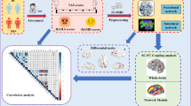 Resting-state fMRI data were preprocessed using GRETNA implemented in MATLAB (https://www.nitrc.org/projects/gretna/)26. The first 10 volumes of were discarded to achieve magnetization equilibrium. Slice-timing correction was implemented to align the fMRI according to the first slice. The individual images were then realigned so that each part of the brain was in the same position on all volumes and warped into the standard Montreal Neurological Institute (MNI) space. Smoothing was used to improve the signal-to-noise ratio and to attenuate anatomical variances caused by inaccurate inter-subject registration after spatial normalization. Nuisance signals were removed from the time series of each voxel to reduce the effects of non-neuronal fluctuations, including head motion profiles and cerebrospinal fluid and white matter signals. The fMRI data were bandpass-filtered to reduce the effects of low-frequency drift and high-frequency physiological noise. Regions of interest (ROIs) were placed using the automatically labeled template (AAL) brain atlas, which divides the brain into 90 regions. A representative time series from each ROI was obtained by averaging the time series of each voxel within that region. FC was then obtained through Pearson correlation between any possible pairs of ROIs. Fisher’s r-to-z transformation was applied to the obtained correlation matrices to improve the normality of the correlation coefficients.