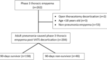 Bagan, P. et al. Postpneumonectomy empyema treated with a combination of antibiotic irrigation followed by videothoracoscopic debridement. J. Thorac. Cardiovasc. Surg. 132(3), 708–710 (2006).