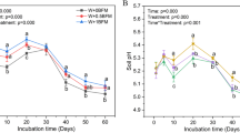 The pot experiment was conducted in a greenhouse of Southwest University, Chongqing, China, from May 15 to September 23 in 2019. PM was applied with chemical fertilizer in different proportions listed as follows: (1) NPK (all N is supplied by urea); (2) 25PM (25% of N by PM and 75% of N by urea); (3) 50PM (50% of N by PM and 50% of N by urea); (4) 75PM (75% of N by PM and 25% of N by urea); and (5) 100PM (all N by PM), each treatment was treated with 3 replications. The rates of N, P and K applied to soil were 0.15 g N kg−1, 0.15 g P2O5 kg−1 and 0.24 g K2O kg−1 soil, respectively. Chemical regents of urea, K2HPO4 and KCl were used to supply N, P and K in chemical fertilizers. No fertilizer addition was set up as the control (CK). The fertilizers were mixed thoroughly with 4 kg of soil at the rate of the experiment design before transferring into polyvinyl pots (24 cm in height and 22 cm in diameter). After pots were submerged with tap water for 15 days, one rice seedling (Oryza sativa L.var. Fengyou 210) was transplanted to each pot and tap water was added to maintain at 3–5 cm water level above the soil surface throughout the rice growing period. Pots were rearranged randomly every week until one week before harvest when the surface water had been dried naturally22,36.