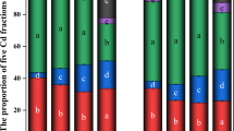 Soil pH was measured using a pH electrode with the soil and water ratio of 1:2.5 and soil organic matter was determined by using potassium dichromate oxidation outer heating37. Soil available Fe and Mn were extracted with solution containing 0.005 M diethylenetriaminepentaacetic acid (DTPA) −0.1 M triethanolamine (TEA) −0.01 M CaCl238. Soil available Cd and As were extracted by 0.01 M CaCl239 and 0.5 M NaHCO340, respectively. The fractions of soil As and Cd were sequentially extracted according to the modified European Union Bureau of Reference (BCR)41; including the acid extractable fraction (F1, extracted by 0.11 M acetic acid (HOAc)), reducible fraction (F2, extracted by 0.5 M hydroxylamine hydrochloride (NH2OH), pH 2), oxidized fraction (F3, extracted by 30% H2O2 (pH 2–3) and 1 M NH4OAc (pH 2)) and the residual fraction (F4, digested with HNO3-HCl (3:1, v/v)).