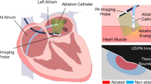 Two approaches were taken: tissue temperature numerical modelling and in vivo imaging using a temperature-sensitive MRI technique (T1w MRI). Our modelling of the temperature distribution at the PFA site (Fig. 1) estimated minimal heating around the tip of the catheter electrode in contact with myocardium, further mitigated by heat dissipation due to circulating blood. This prediction was supported in the animal experiment by the absence of visible lesions in T1w MRI. At approximately 55–65 °C, oxidation of ferrous (Fe2+) to ferric (Fe3+) iron within hemoglobin and myoglobin occurs. These met-forms (methemoglobin and metmyoglobin) are paramagnetic molecules and act as endogenous contrast agents46,47. While LGE cMRI confirmed the presence of PFA lesions, no enhanced lesions were observed using T1w MRI at these same sites (Fig. 1), supporting our understanding that the PFA injury as performed in our study was largely of nonthermal origin.