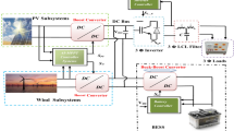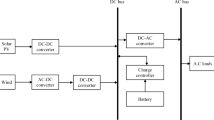 Thanks to their availability, simplicity of use, and clean environmental properties, solar and wind energy are among the most reliable sources of renewable energy5,6. Due to the intermittent and unpredictable nature of photovoltaic and wind generators and the variable load demand, energy storage system integration in systems based on renewable sources is essential7. By strategically placing an energy storage system, can enhance the quality of energy by regulating frequency and voltage. This will also reduce the impact of fluctuations and increase the value of the existing supply, especially during high electricity usage periods8,9. Renewable energy systems that are autonomous can be used on either an AC bus, a DC bus, or a combination of both. It is simpler to manage a DC bus because of its uncomplicated structure and lower information requirements. However, an AC bus must be closely designed and demands high information accuracy, like frequency synchronization and interactive power. This can make it hard to control, but an AC bus may be necessary in certain situations10.