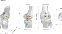 The tibio-femoral rotations were then calculated as an intrinsic extension-adduction-internal rotation Cardan sequence of the tibia relative to the femur (a definition comparable to the Grood and Suntay approach)40,41,42. On the other hand, tibio-femoral translations were given by the vector describing the position of the femoral origin relative to the tibial origin, along the tibial reference frame axes. Left knees were mirrored into right knees, in order to ensure consistent clinical interpretation of the positive rotations and translations (e.g. a positive rotation around the antero-posterior axis always represents knee adduction).